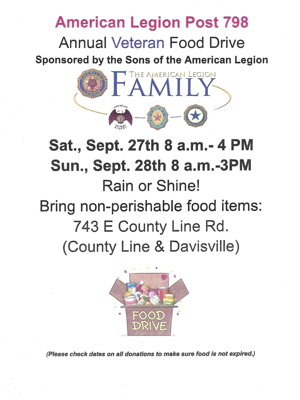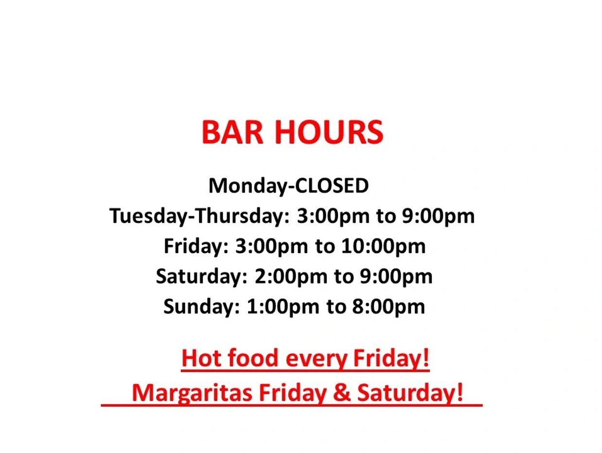 Legion & Home Association: 3rd Tuesday of the month 6pm & 6:30pm